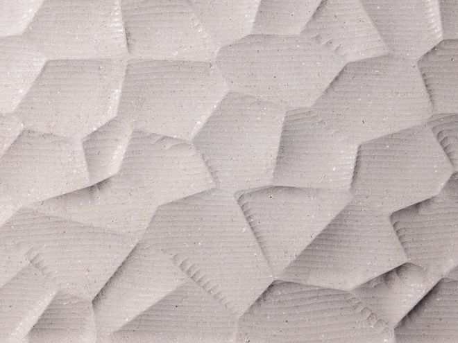 Durchgefärbtes Fassadenmaterial mit geschliffener Oberfläche