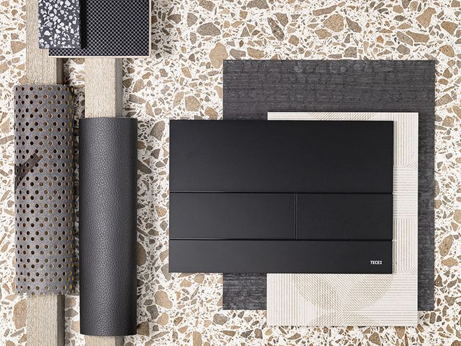 Die Sehnsucht nach Echtmaterialien wie Eiche ist ungebrochen. Ganz nach dem Motto „1001 individuelle Möglichkeiten“ greift TECEloop diesen Gedanken emotional durch seine Vielfalt in Farbe und Material wie Beton, Eiche, Kunststoff, Marmor, Schiefer und Titan auf. Die Collage arbeitetet diese Sehnsucht selbstbewusst durch die besondere Haptik heraus. Natürliche Holzoberflächen – mal dynamisch dreidimensional, mal farblich charakterisiert – stehen glatten, harten Material entgegen, die sich durch zarte Farbgebung und sanfte Verläufe erheben. Textile Anmutungen bringen die Wohnlichkeit deutlich zum Ausdruck.
